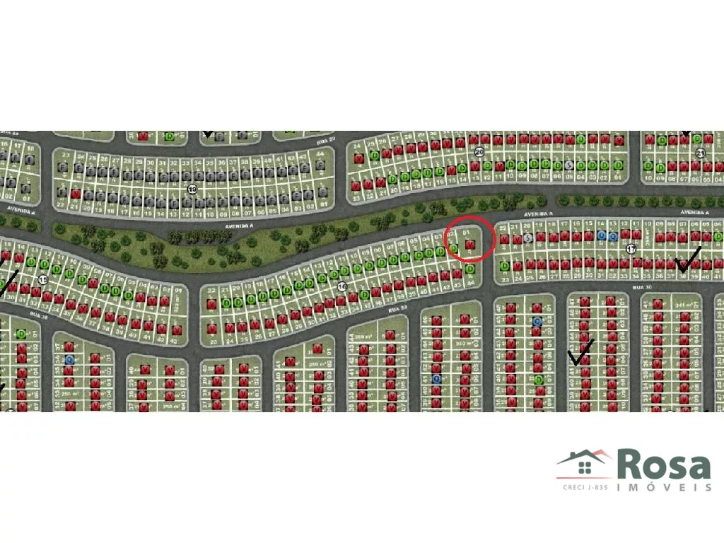 Terreno comercial de esquina no Parque das Águas, localizado na avenida principal do loteamento. Com 15,88m + 8,59m de frente para avenida, 17,65m de fundos, 19,53 lado direito e 25m lado esquerdo.