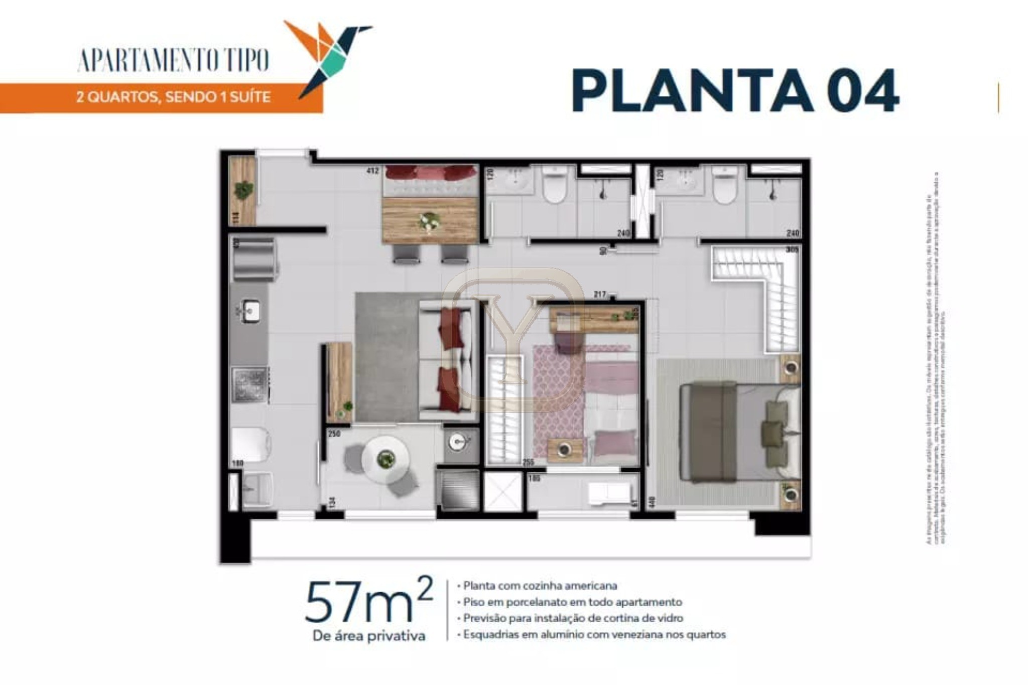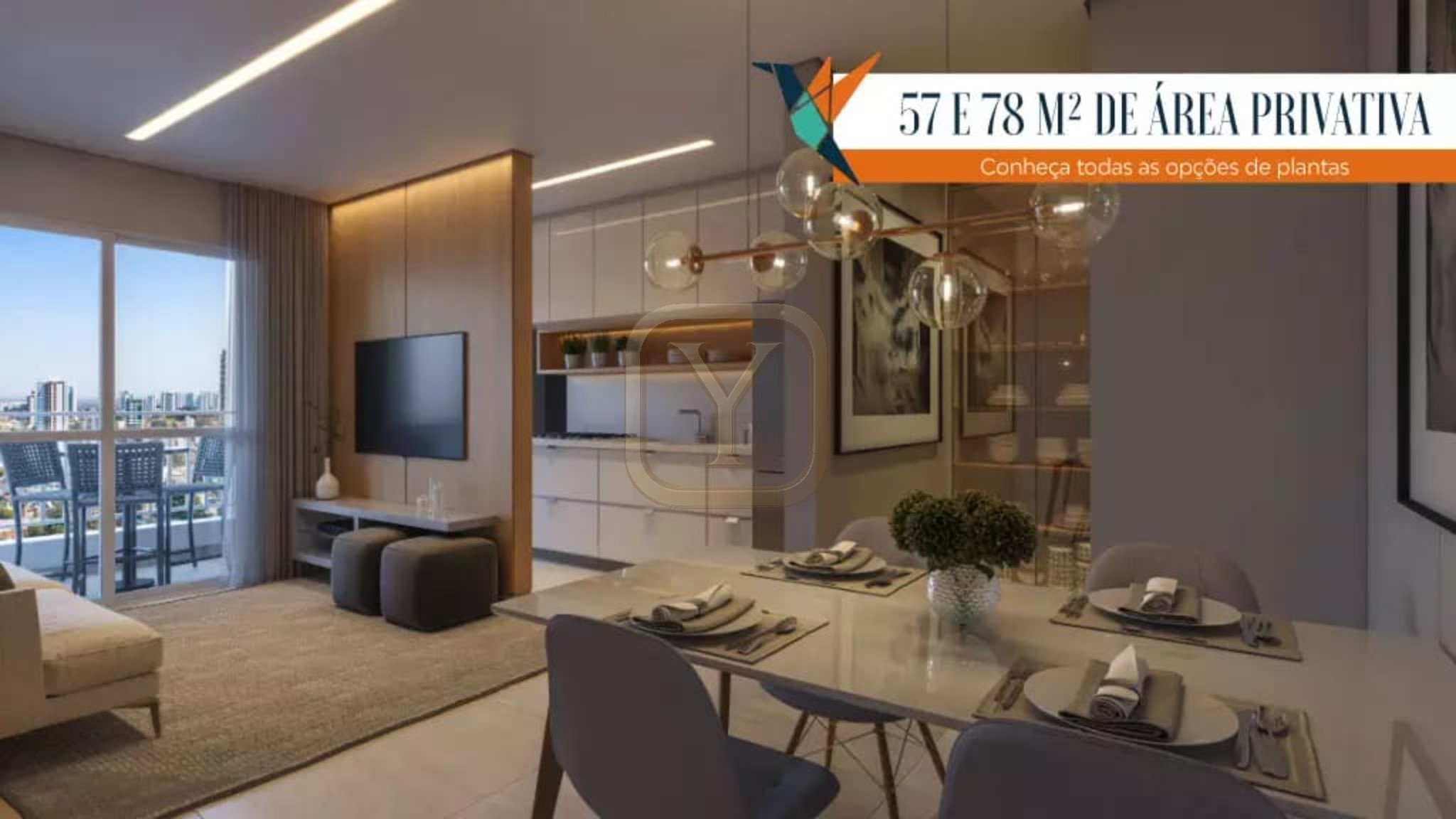 Descubra o conforto e a praticidade de morar em um condomínio completo!<br>Apartamento de 57m², com 2 quartos (sendo 1 suíte), 2 banheiros, planta moderna com cozinha americana e acabamento de alto padrão, incluindo piso em porcelanato e es