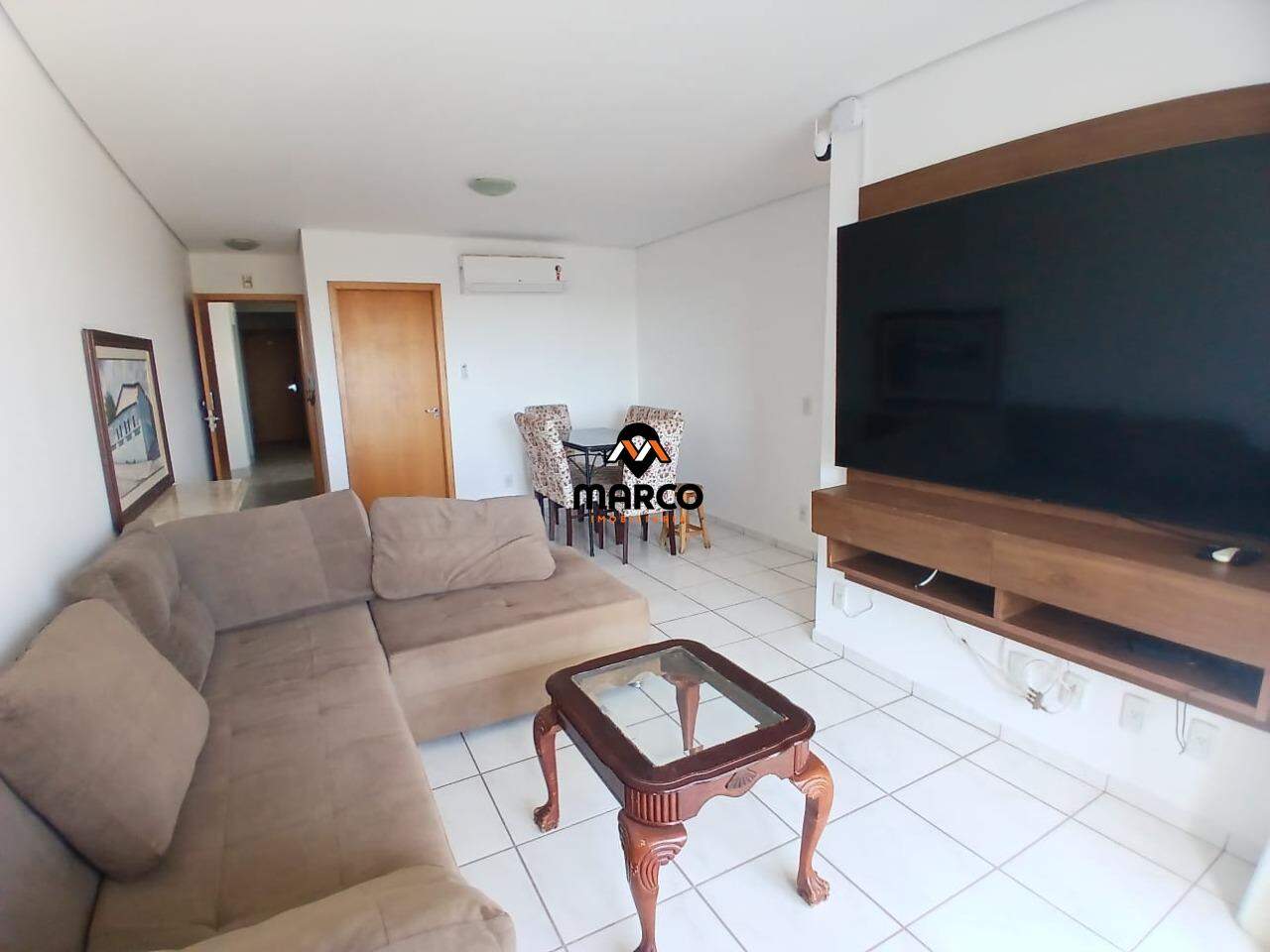 Residencial Jardins – 7º andar. (Próximo do Hospital Santa rosa). - Apartamento com 3 quartos (sendo 1 suíte) todos com armários, cama, ar condicionado. - Sala para 2 ambientes com sacada (sofá, mesa de jantar, painel, tv, ar condicionado). -