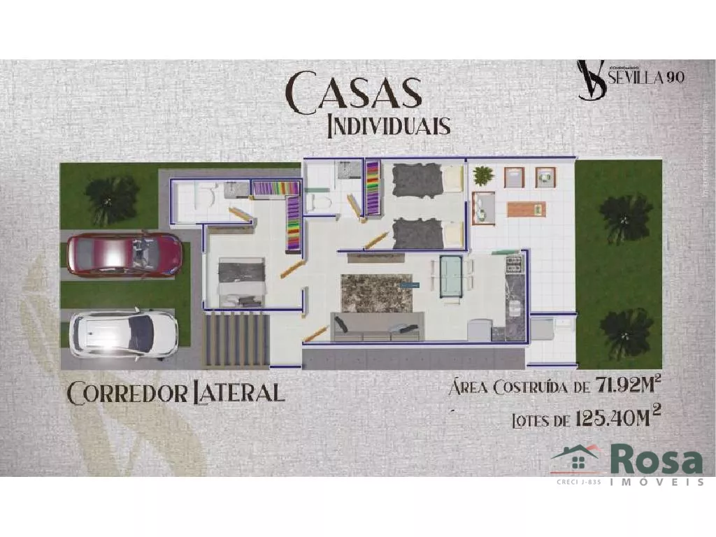 Casas individuais em condomínio fechado, pronta para morar, piso retificado 61x61, pias em granito. Arquitetura moderna, casa com 2 quartos sendo 1 suíte, sala para dois ambientes, cozinha, área de serviço, quintal e corredor na lateral. Condomínio com apenas 210 casas. O condomínio conta com portaria humanizada 24 horas, área de lazer completo: Piscina, 02 quiosques, Playground, e Campo de Futebol.