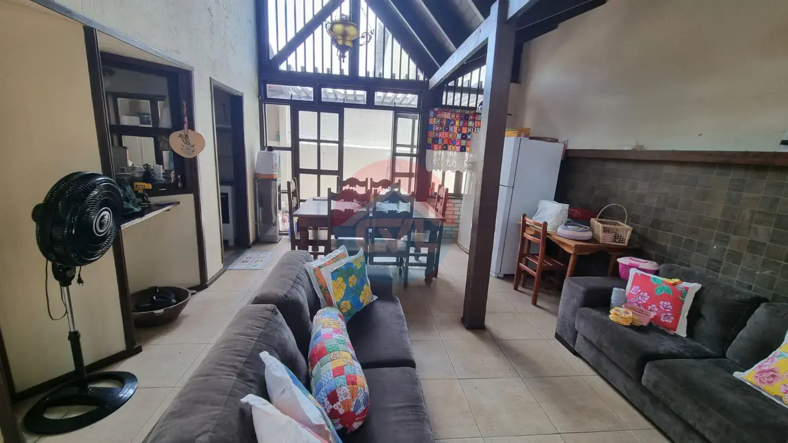 Excelente chalé com 3 pavimentos Térreo : Sala, cozinha e espaço gourmet 1º pav. composto de 02 quartos e 01 banheiro 2º pav. 01 suíte área de lzaser do cond. cpm piscina, playground, mirante, quadra de espostes, portão eletrônico Ficam. Quartos: camas, guarda roupas, ventilador de teto, ar condicionado, cortinas. Salas de TV: ventilador de teto. Cozinha: exaustor, fogão, armários de aço. Bebedouro. Espaço gourmet: mesa de cerejeira com 6 cadeiras, 1 geladeira, 2 sofás . Área externa: 4 cadeiras de fio com mesa. CRECI J 20943 Rev: 22