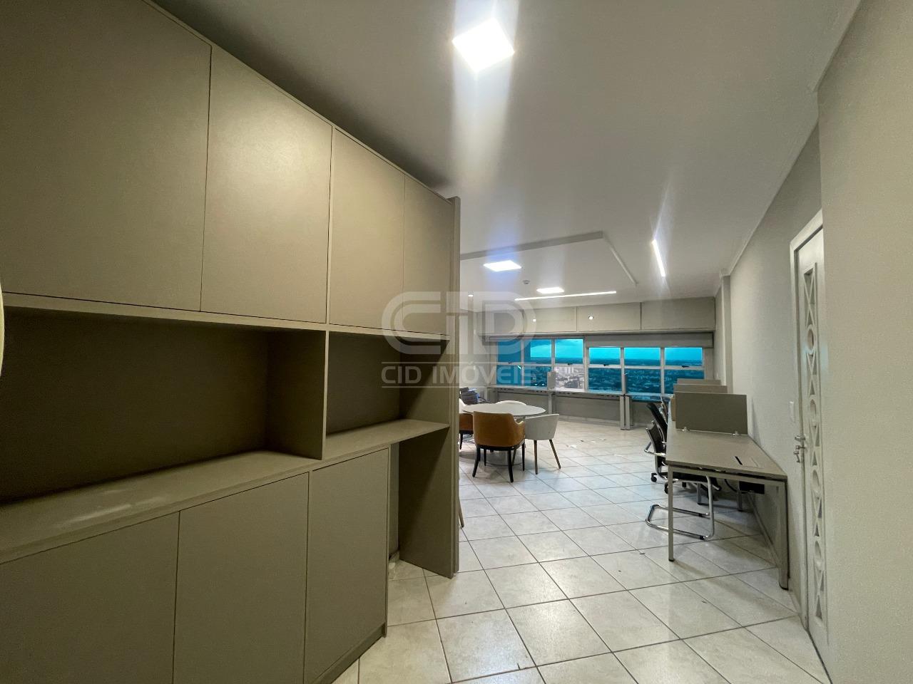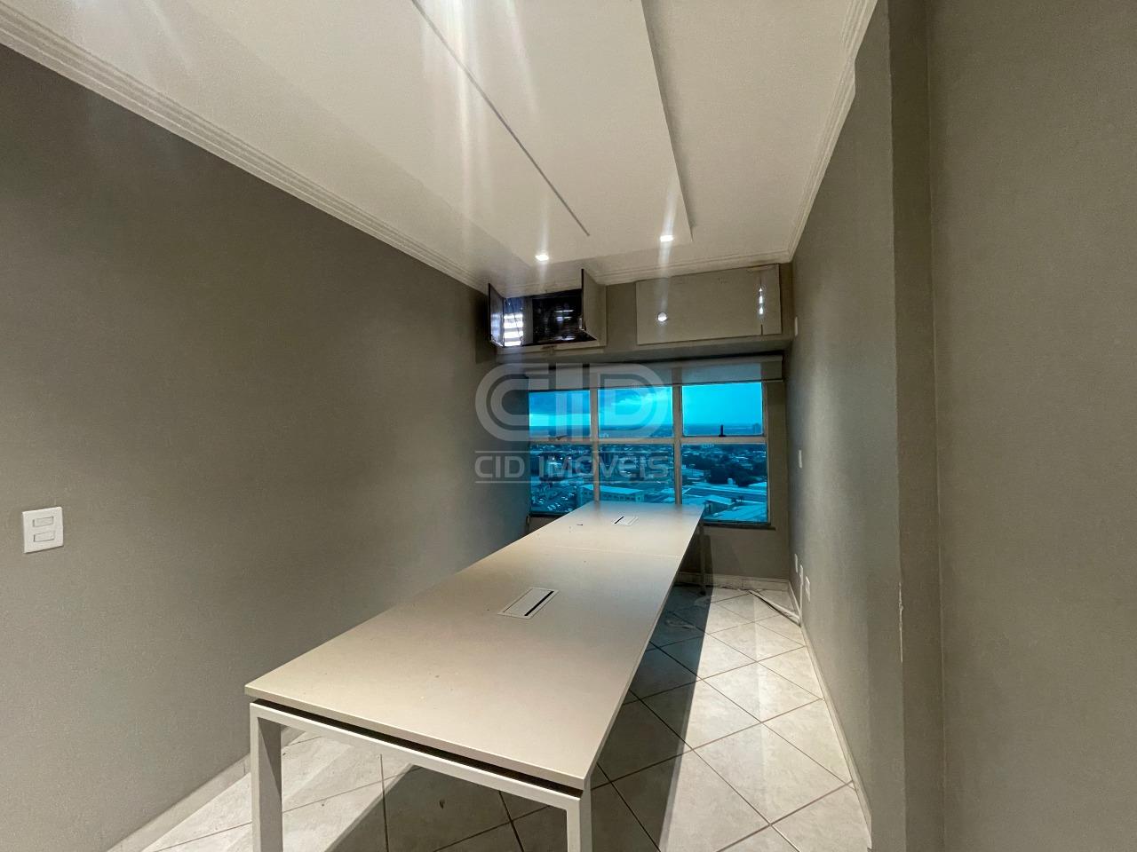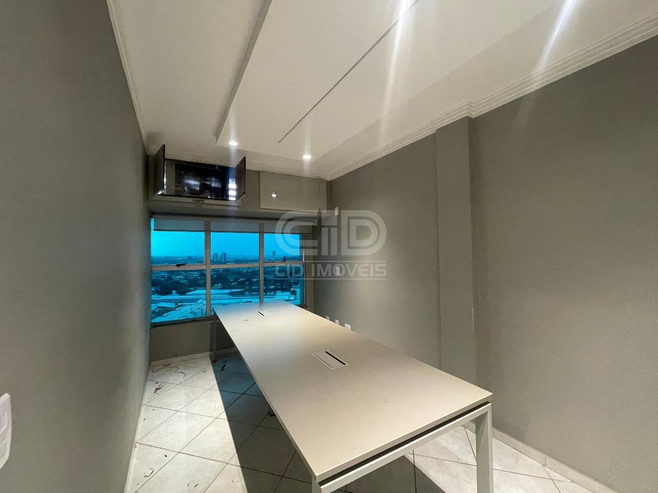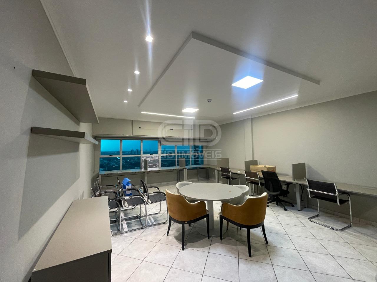 Excelente sala comercial situada no décimo quarto andar do Edifício American Business Center. Possui mobílias completas e de alta qualidade, contando com um ambiente agradável contemplado pelo sol da manhã. Sala conta com área 105 m², possuindo ao todo: - 1 sala para recepção ampla, com balcão e ar condicionado; - 1 sala com jogo completo de cadeiras, armários e balcão com baia; - 1 Sala para escritório com mesa e armário; - 1 Sala para reunião com mesa central e suporte para TV; - Copa com armários planejados; - 2 banheiros; - 2 vagas de garagem. Ligue agora e agende sua visita!