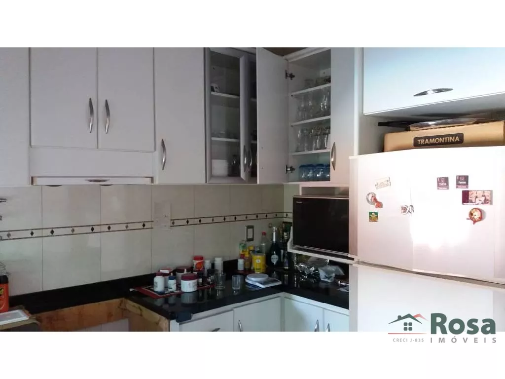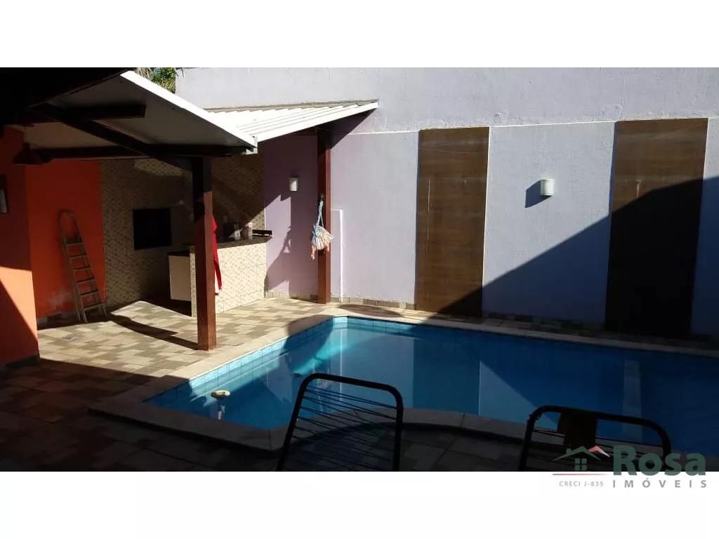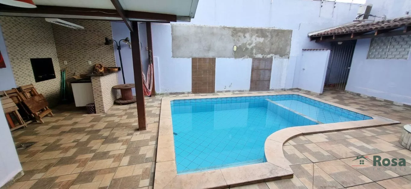 3 quartos e duas cozinhas com armários, sala, área gourmet c/ churrasqueira, piscina, casa de laje<br><br>
