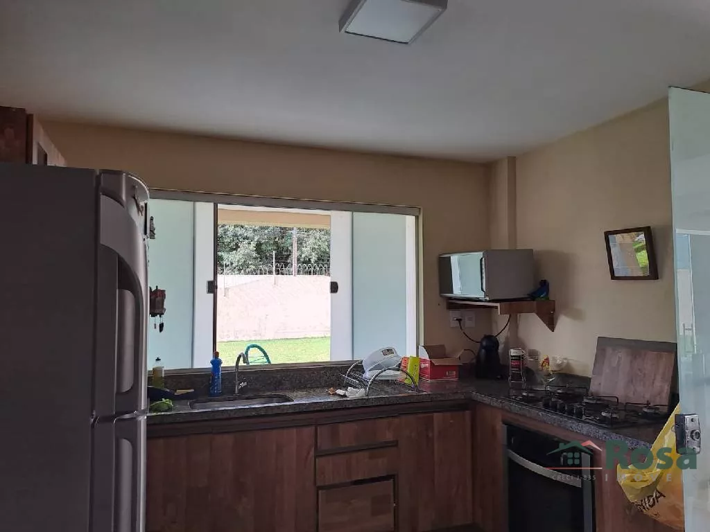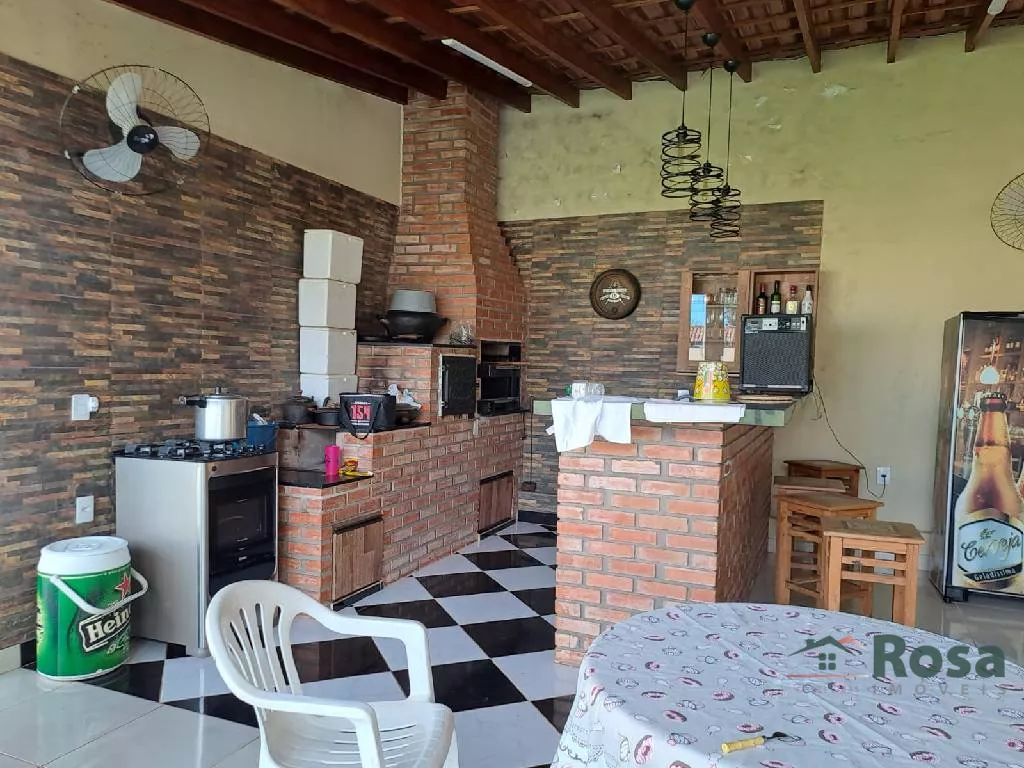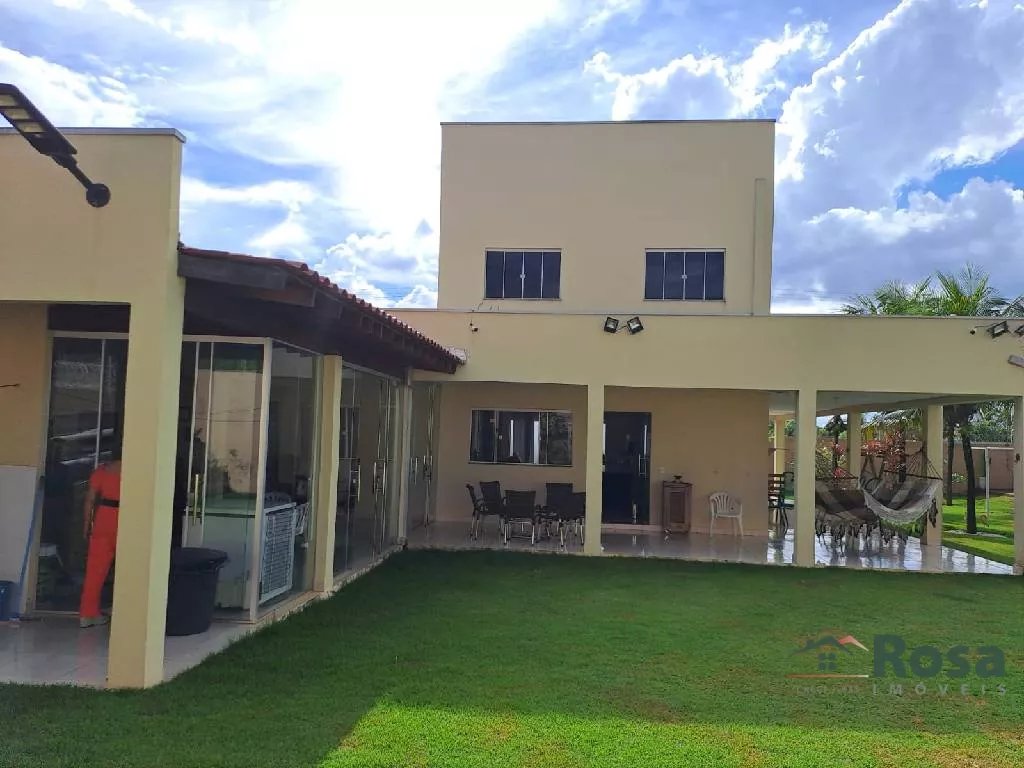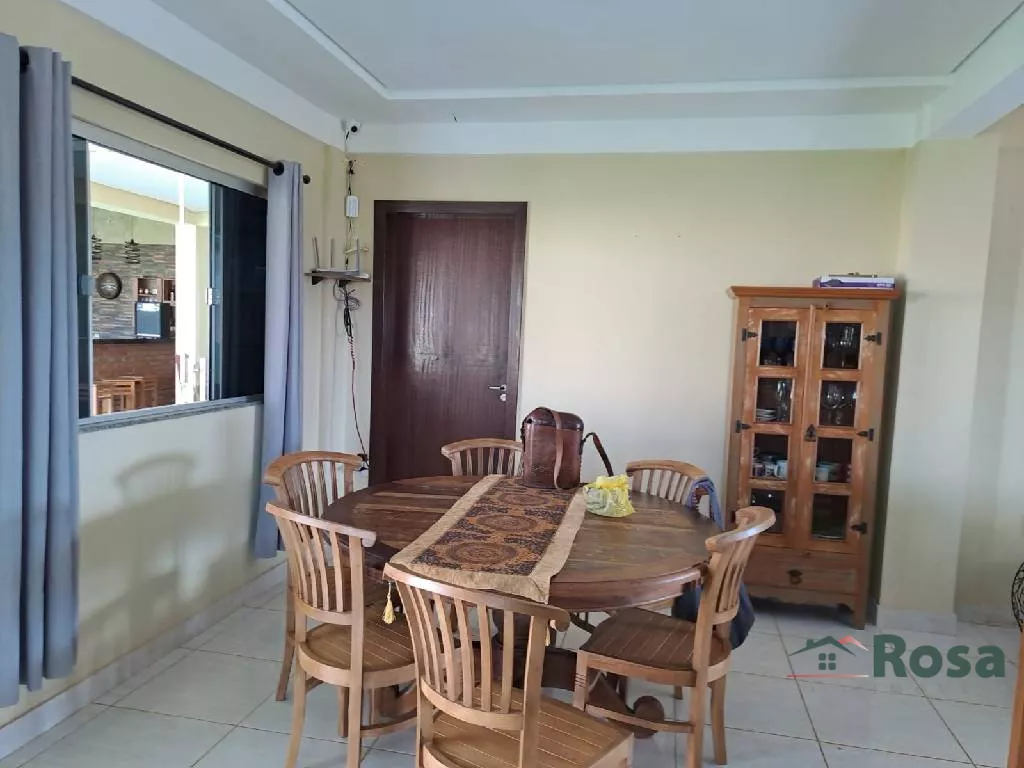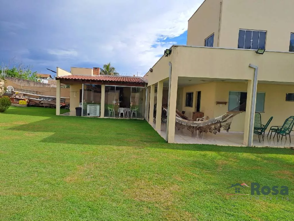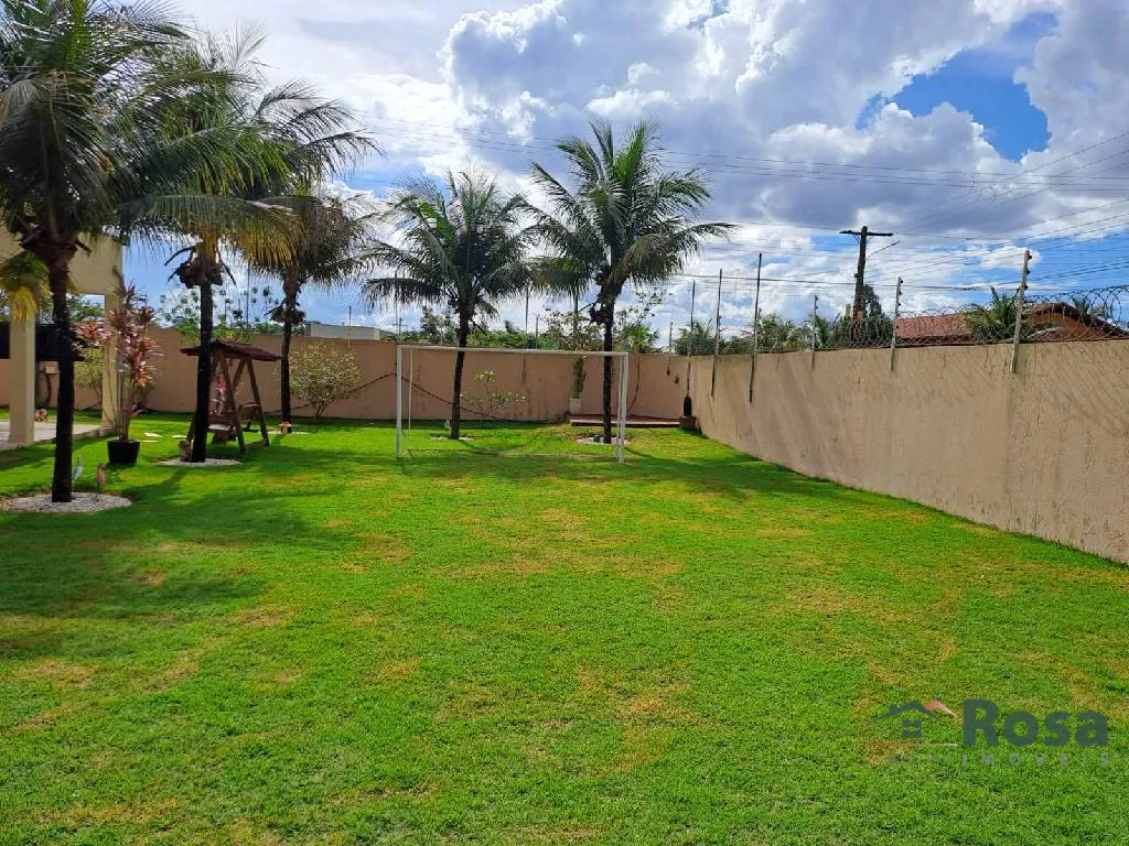 Parte superior com 3 quartos sendo 1 suite, banheiro social Parte Inferior com sala conjugada, cozinha, lavabo, uma suite, varanda, área gourmet com churrasqueira, campo de futebol , área de serviço com banheiro