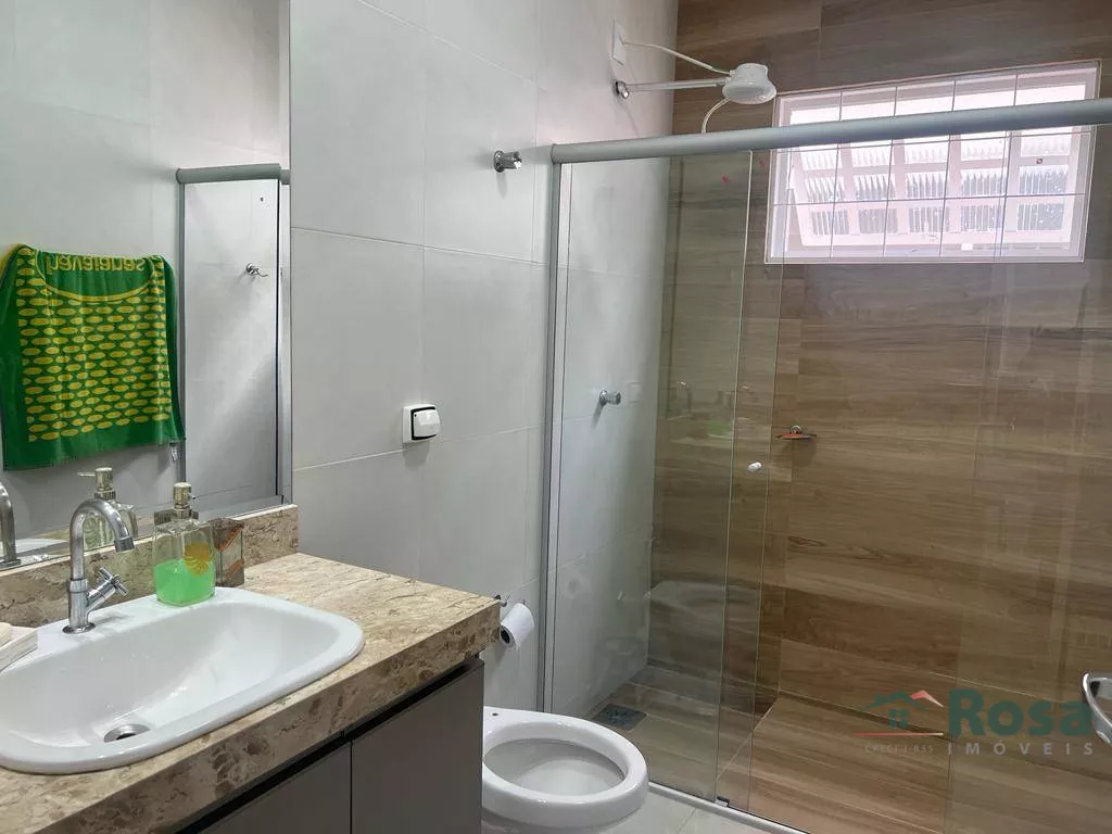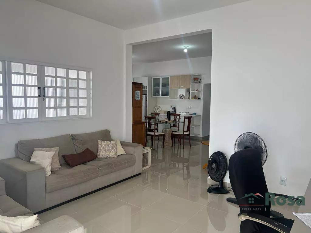 Ótima Residência Térrea, bem localizada, com 03 quartos, sendo uma suíte com closet, 01 banheiro social reformado, cozinha, sala ampla, área de serviço. Área Gourmet nos fundos com 01 suíte, amplo espaço, bancada com fogão Cooktop, churrasqueira e fogão a lenha. Garagem para 02 carros coberta e 02 carros descoberta, toda em Laje. Caixa D\'água com 5.500 l. Com energia solar.<br><br>