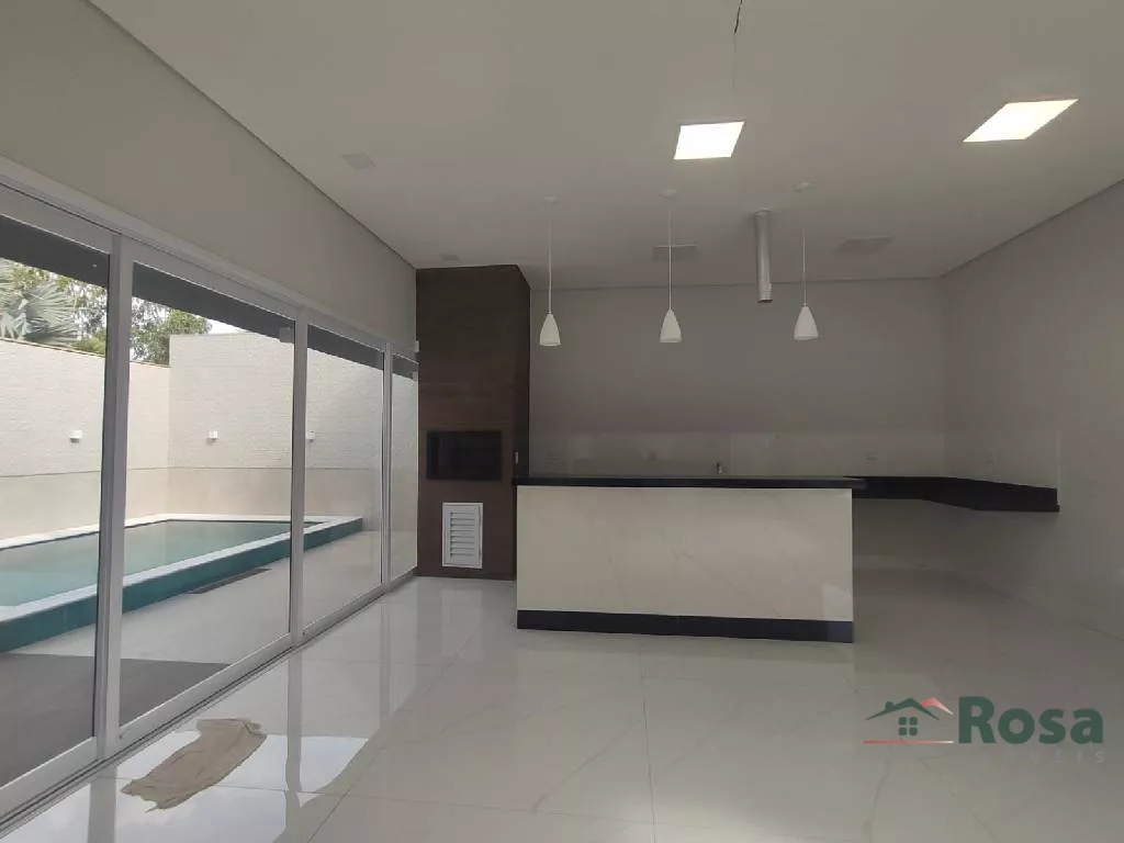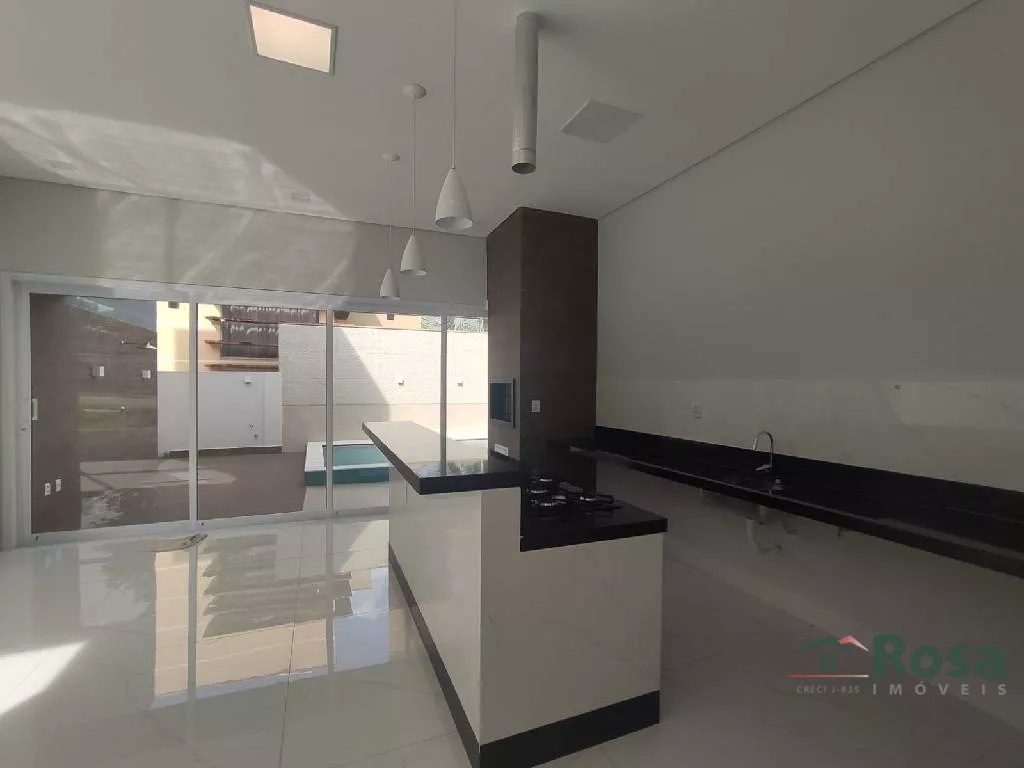 Casa com 232 m², terreno 502m², 03 Suítes com armários sendo uma master com closet, 01 quarto reversível. Ampla sala com pé direito duplo. Na entrada uma linda porta pivotante com 3,35 m de altura. Cozinha com ilha integrada com espaço gourmet, churrasqueira e piscina. Banheiro no espaço gourmet. Água quente nas torneiras dos banheiros e cozinha, area de serviço e despensa. Garagem. Rampa de acesso PCD. Com os móveis planejado, ar condicionado e cortina,<br><br>