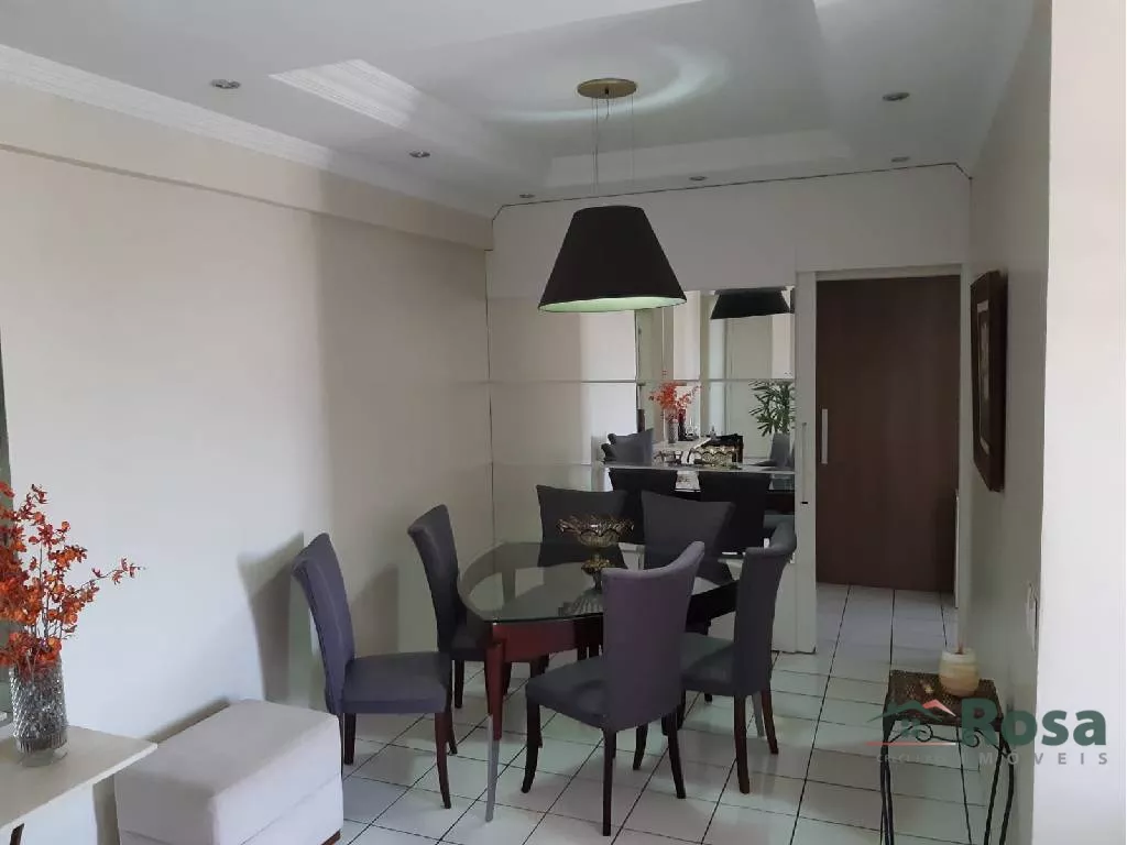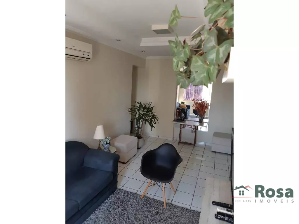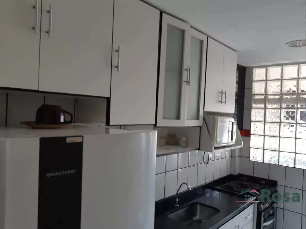 02 quartos, 01 banheiro social, 01 banheiro de serviço, na cozinha armario e bancada de apoio, fogão cooktop, forno embutido, dispensa com armario e prateleira, sala com dois ambiente com ar condicionado split, painel e espelho, teto de gesso e ilu