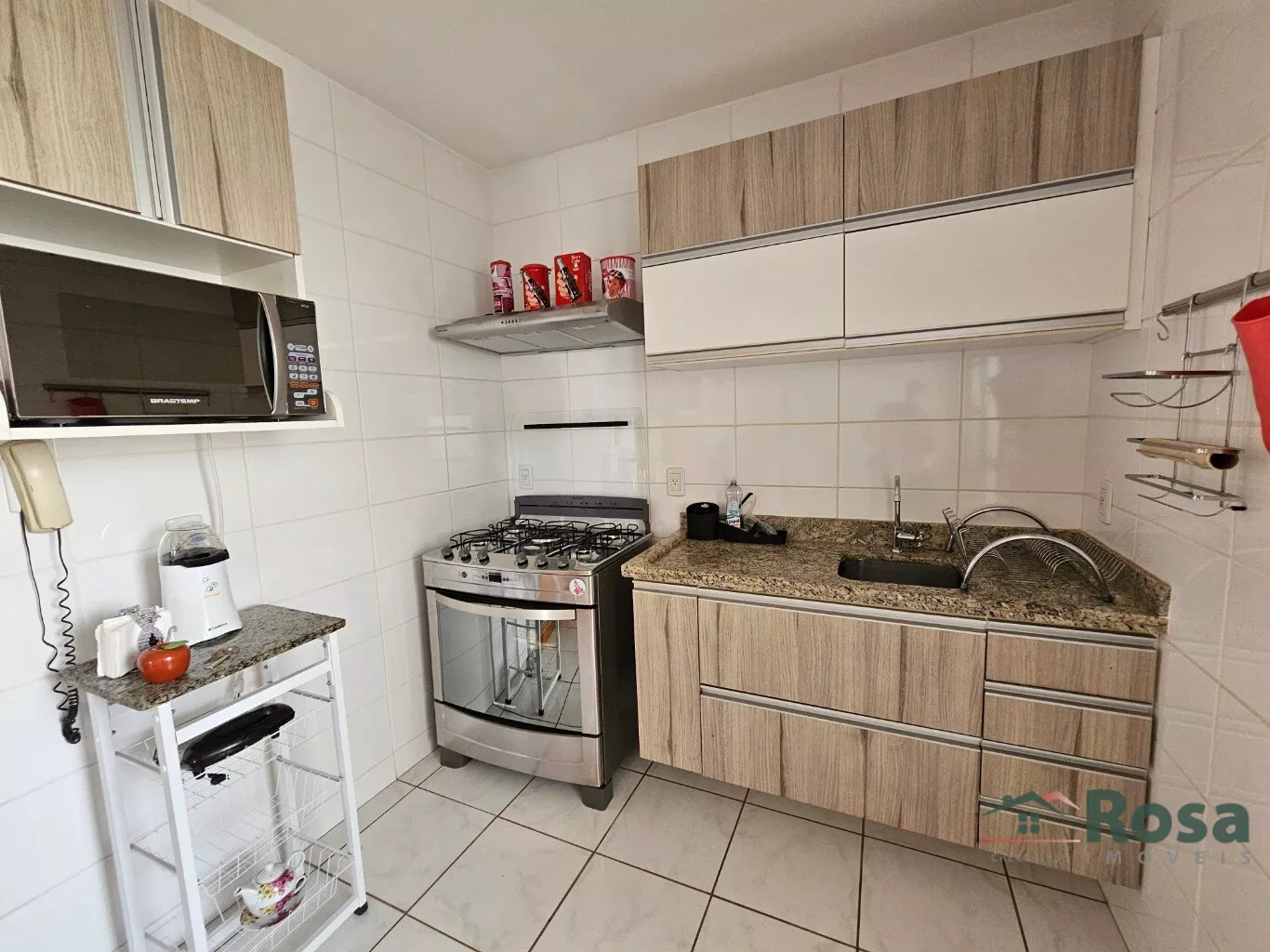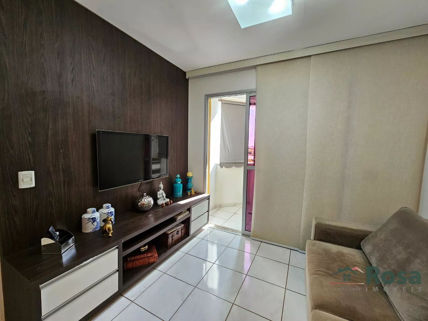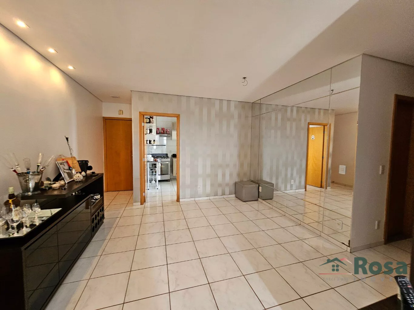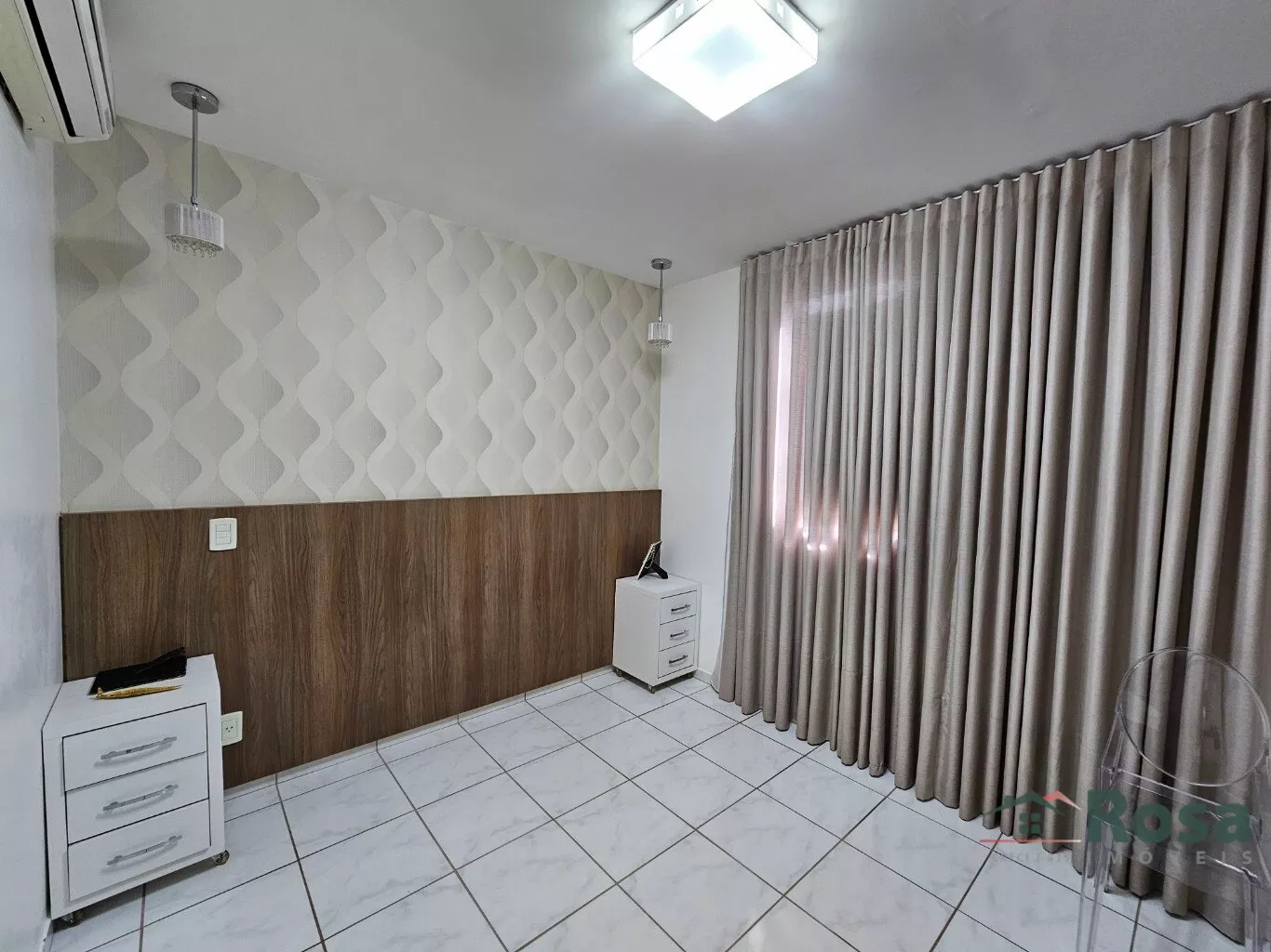 Sala para dois ambientes com sacada - Cortina -Painel de TV -Ar condicionado - Espelho - Banheiro social - Completo de armários - 1 suite com ar condicionado e 1 quarto com ar condicionado - Cozinha com armários - Exaustor - Lavanderia com banheiro