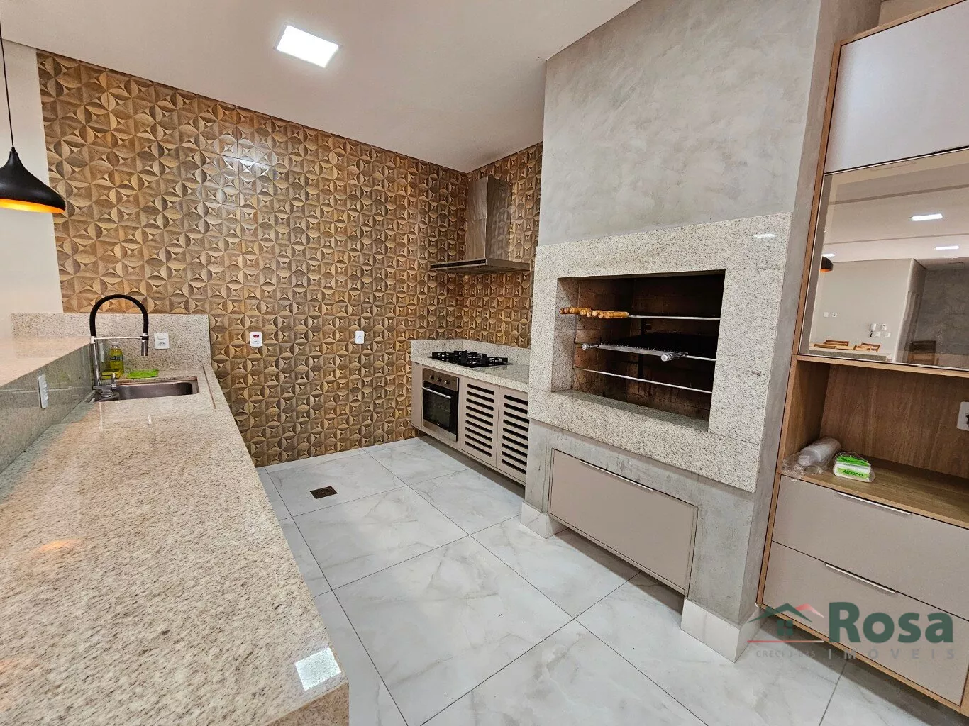 Sala para dois ambientes com sacada - Cortina -Painel de TV -Ar condicionado - Espelho - Banheiro social - Completo de armários - 1 suite com ar condicionado e 1 quarto com ar condicionado - Cozinha com armários - Exaustor - Lavanderia com banheiro , armário e varal<br><br> Área de lazer com: Salão de festas - Área gourmet - Piscina adt e inf - Quadra de esportes<br><br>