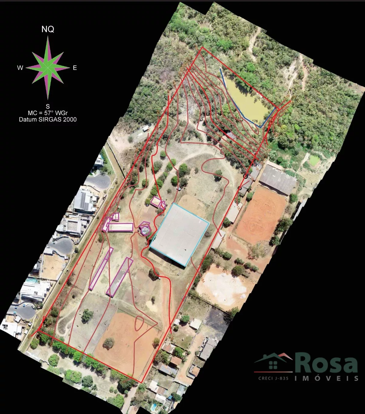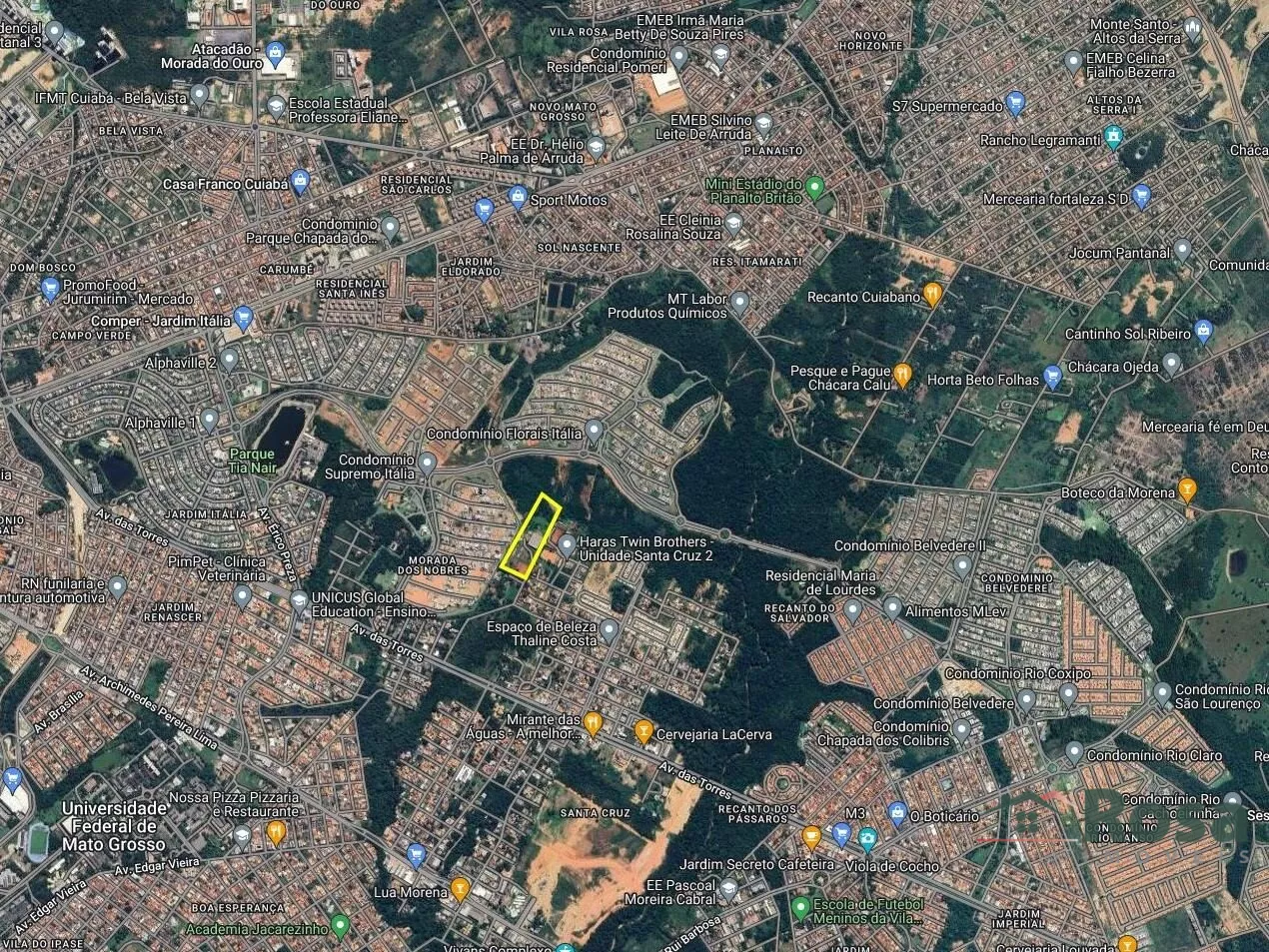 Excepcional área para empreendimento imobiliário, na divisa dos Bairros Morada dos Nobres e Santa Cruz, faz divisa com supremo Itália; Área possui 141 metros de frente, lado esquerdo 398 metros, lado direito 373 metros e fundos, 120 metros; praticamente toda murada, possui ainda um lago nos fundos.
