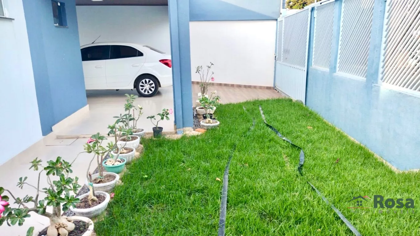 Casa nova, toda térrea, em laje, piso porcelanato, com sala integrada 2 ambientes e cozinha gourmet, 3 quartos sendo 1 suíte, banheiro social, Escritório. Varanda nos fundos com churrasqueira com bancada e pia e banheiro. Despensa, lavanderia coberta. Garagem coberta e área social aberta na frente. Toda murada com portão e grade na frente. Quintal nos fundos. Energia solar fotovoltaica 6 kw com produção de 700 kw por mês com 11 placas.<br><br>