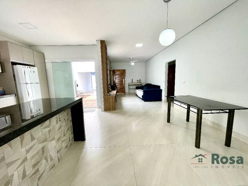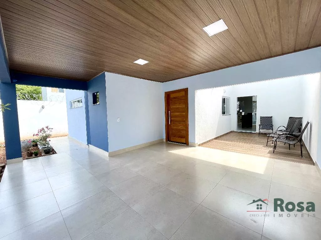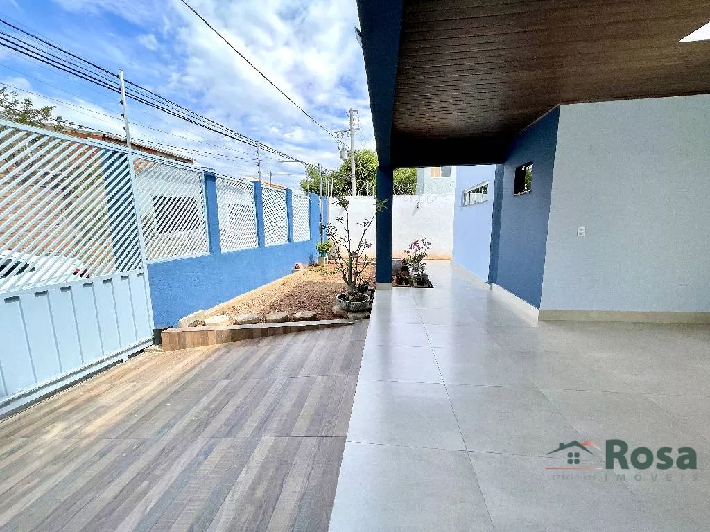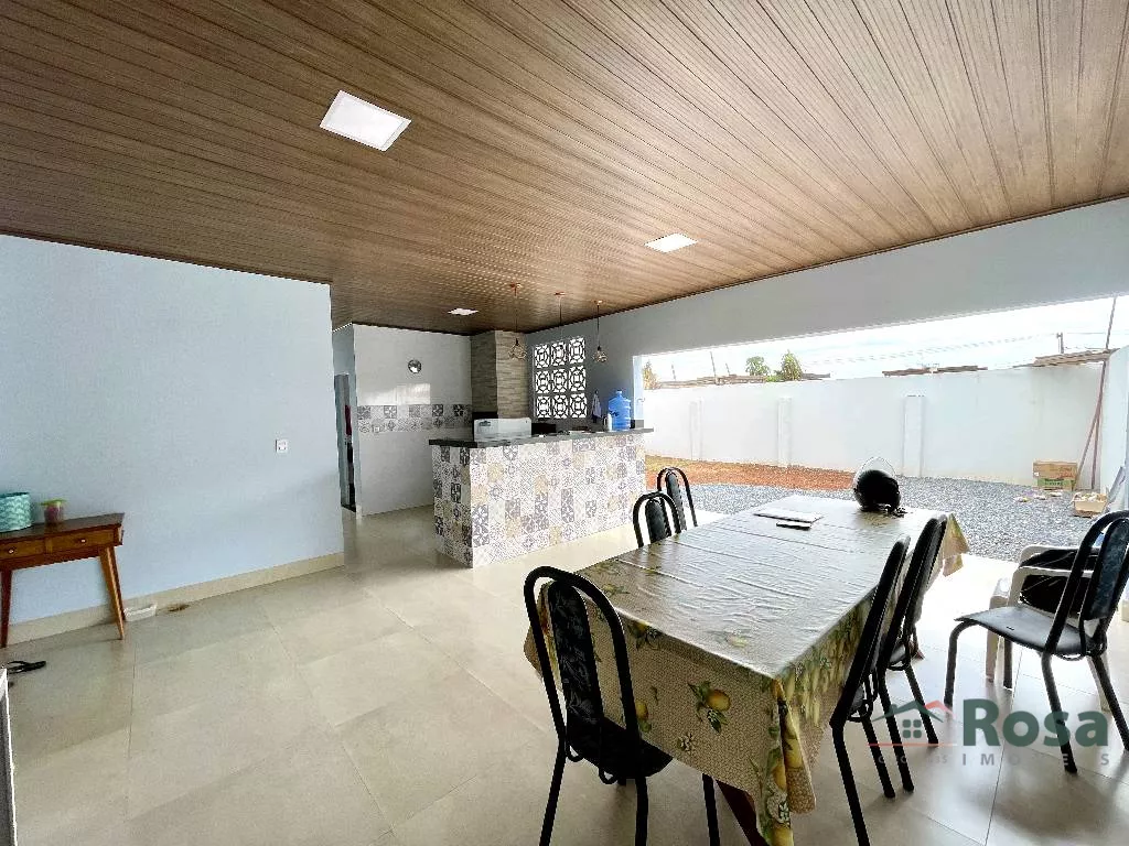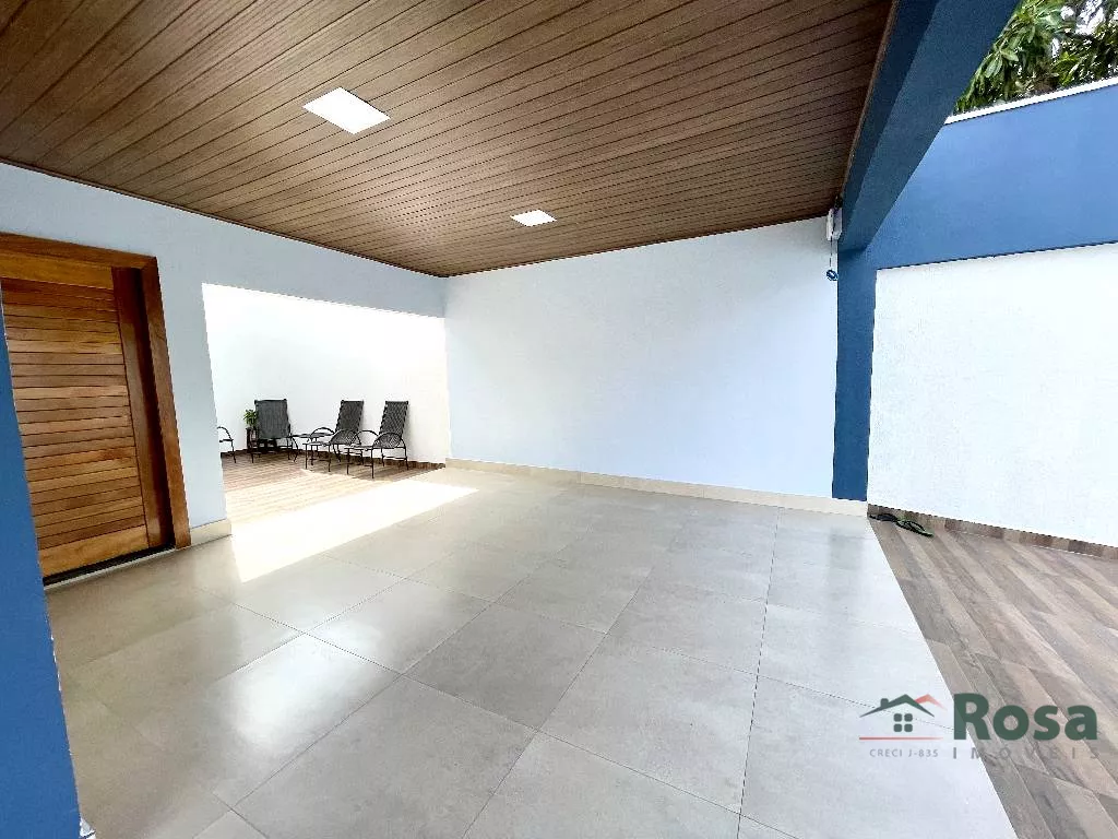 Casa nova, toda térrea, em laje, piso porcelanato, com sala integrada 2 ambientes e cozinha gourmet, 3 quartos sendo 1 suíte, banheiro social, Escritório. Varanda nos fundos com churrasqueira com bancada e pia e banheiro. Despensa, lavanderia cobe