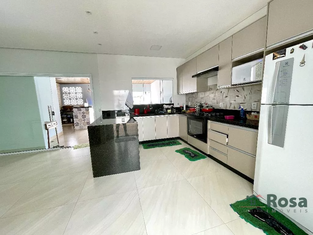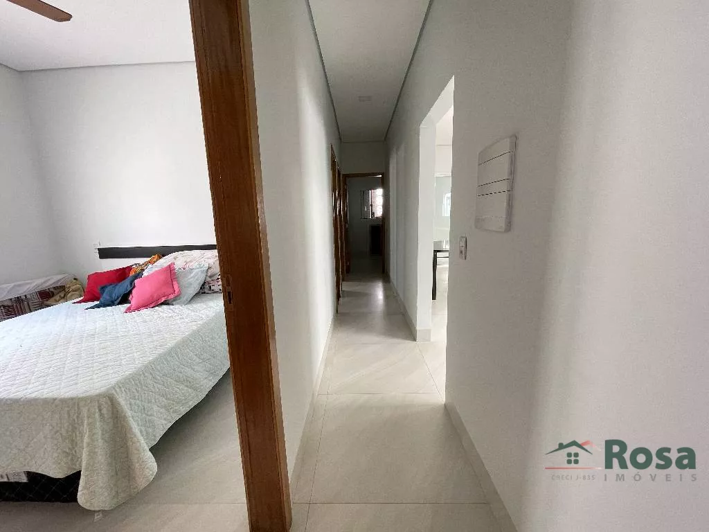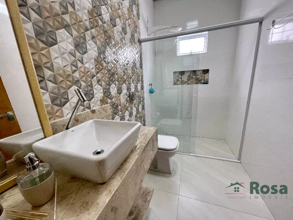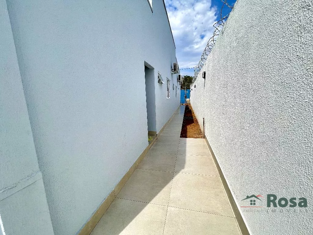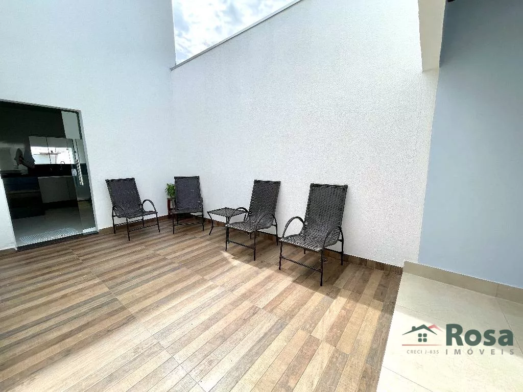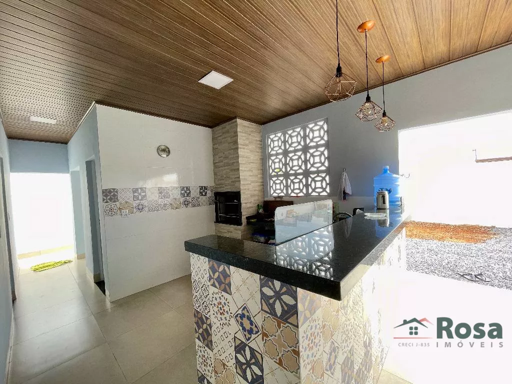 Casa nova, toda térrea, em laje, piso porcelanato, com sala integrada 2 ambientes e cozinha gourmet, 3 quartos sendo 1 suíte, banheiro social, Escritório. Varanda nos fundos com churrasqueira com bancada e pia e banheiro. Despensa, lavanderia cobe