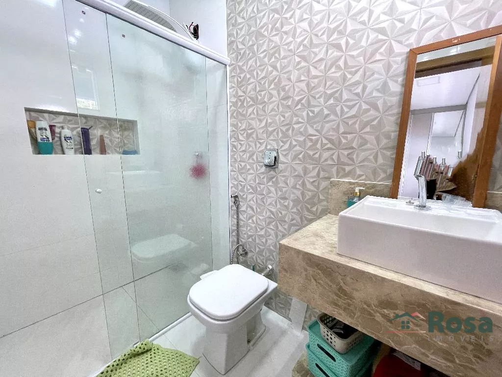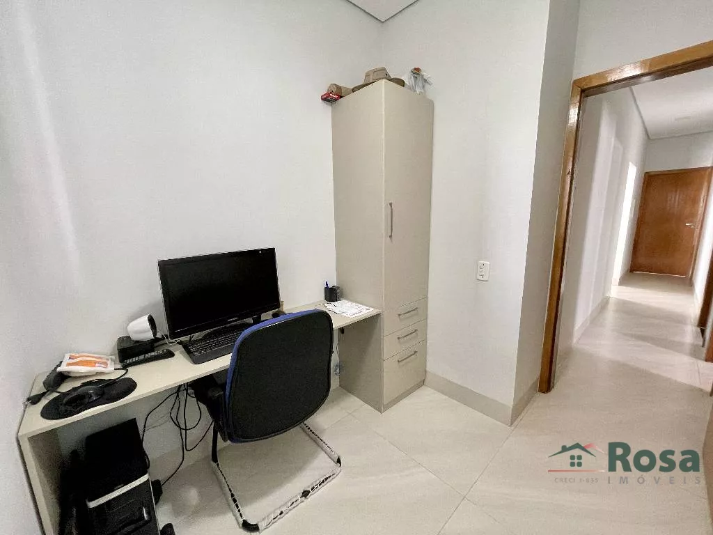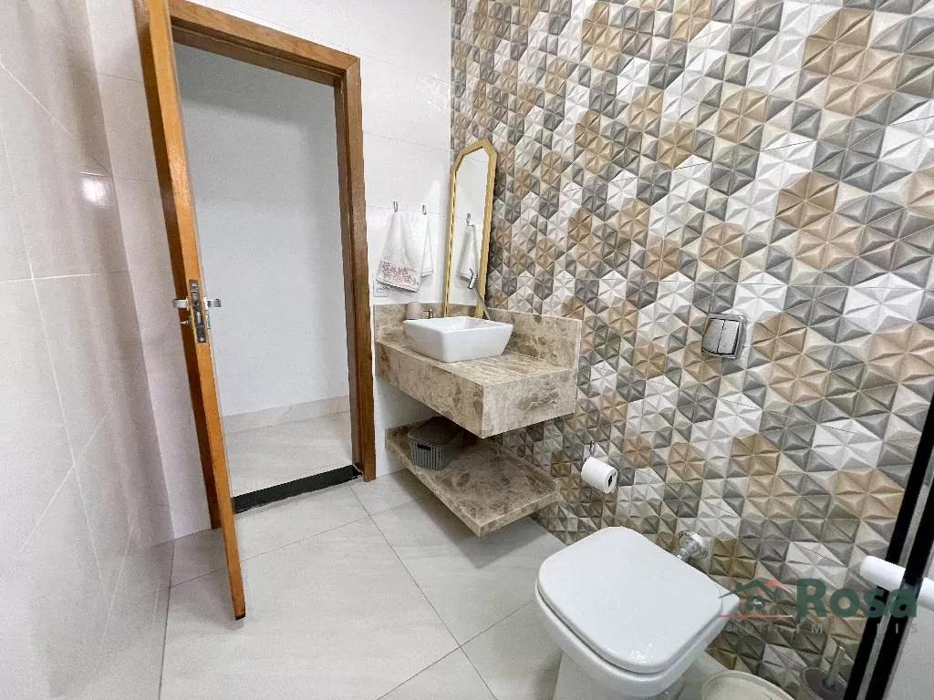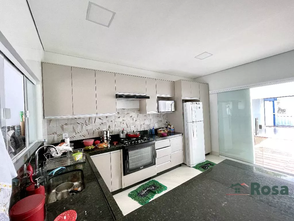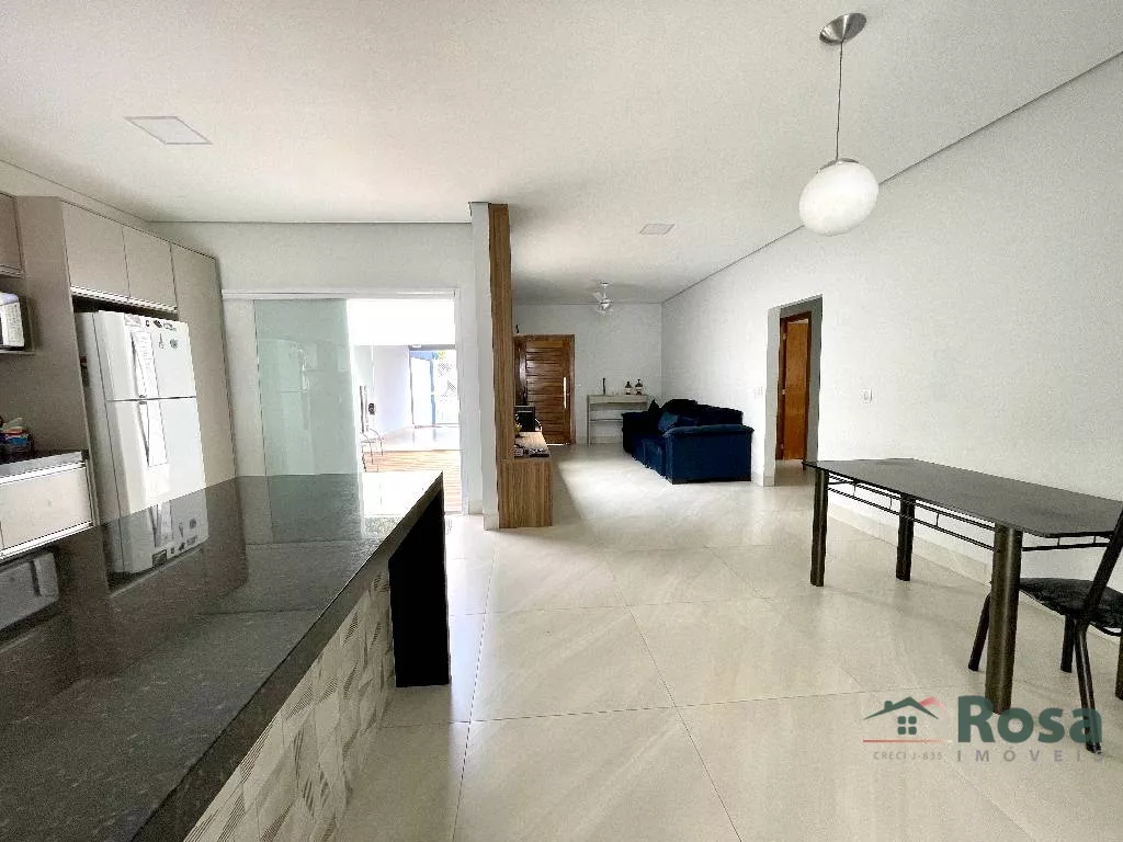Casa nova, toda térrea, em laje, piso porcelanato, com sala integrada 2 ambientes e cozinha gourmet, 3 quartos sendo 1 suíte, banheiro social, Escritório. Varanda nos fundos com churrasqueira com bancada e pia e banheiro. Despensa, lavanderia cobe