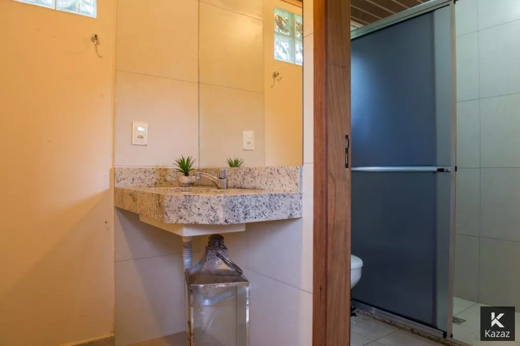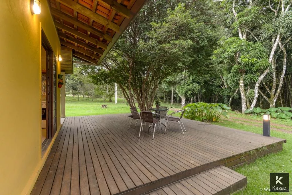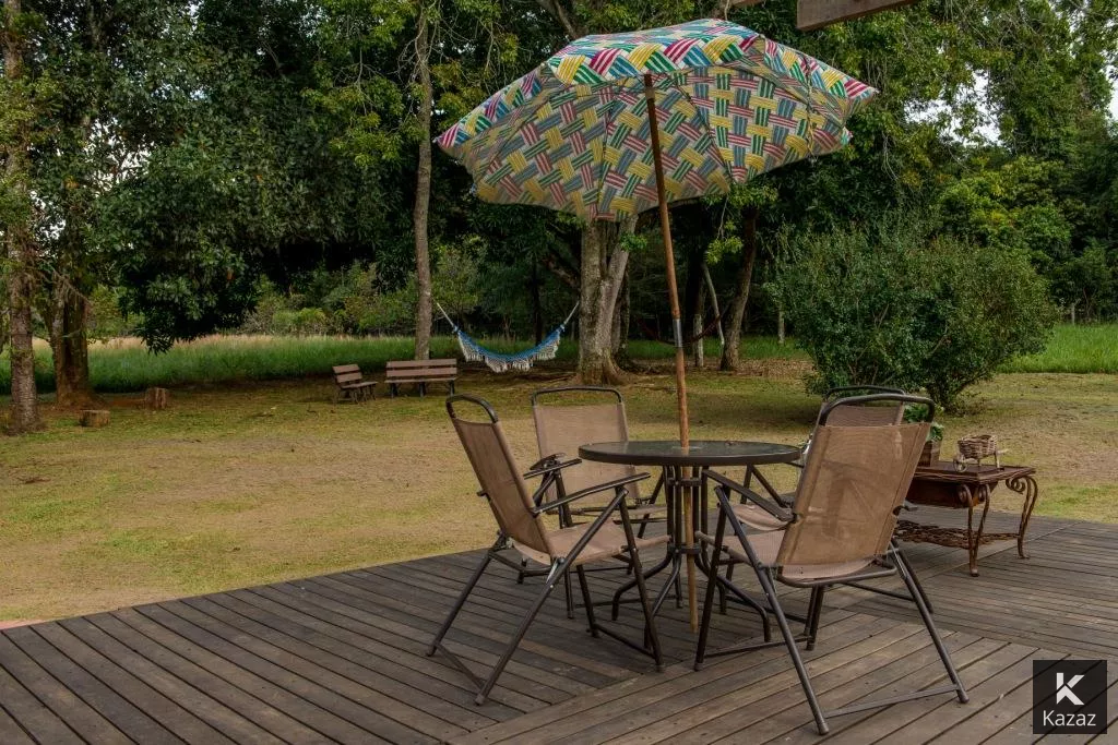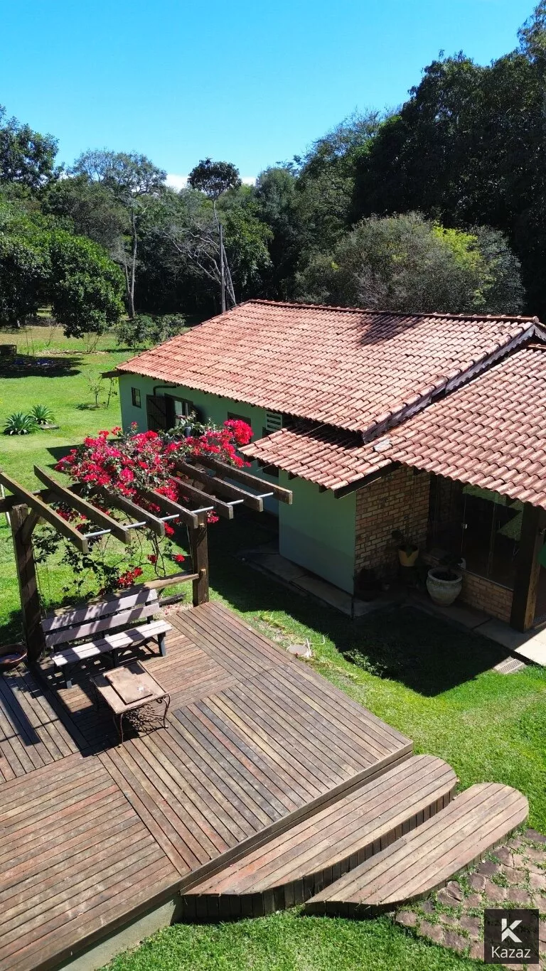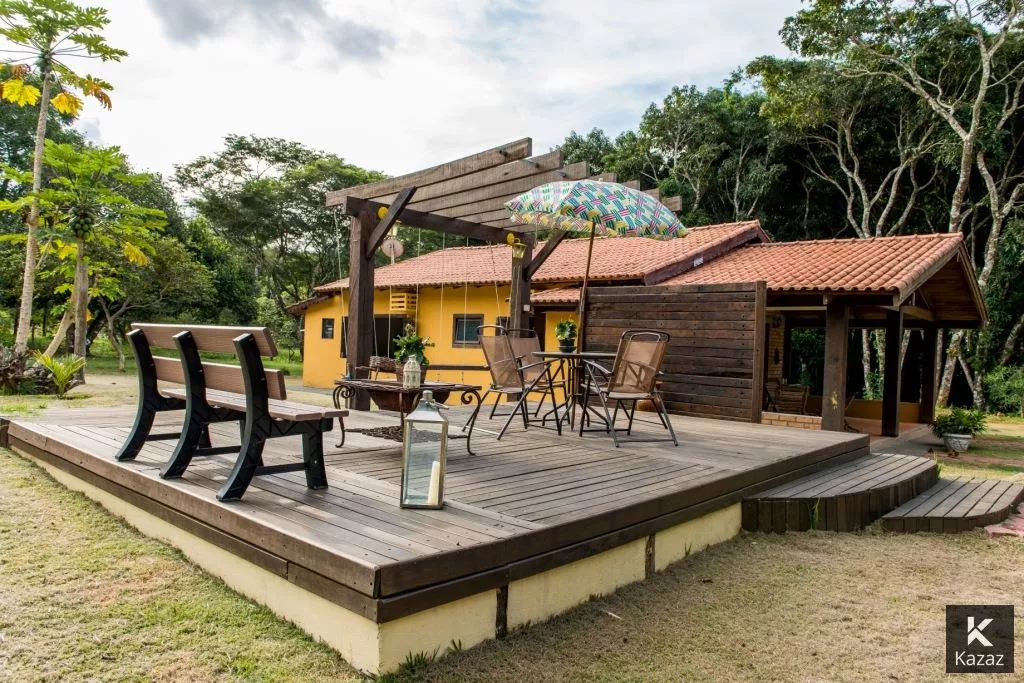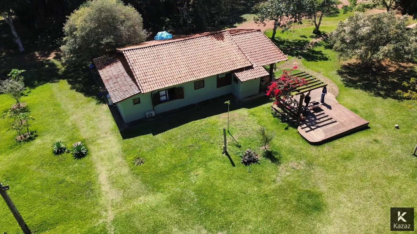 LINDA POUSADA EM CHAPADA DOS GUIMARÃES<br>A 5 MINUTOS DO CENTRO - SÃO 3,7 HECTARES,<br>PRÓXIMO AO MIRANTE CONTENDO: <br>02 chalés de padrão e acabamento rústico para uso da família, Deck Central, Estacionamento, Quadra de Volei, Canil com área total construída de 393,41 m2 (projeto elétrico e planta baixa disponível);*<br>Chalé 01 - com dois quartos conjugados com um banheiro em porcelanato, varanda,/recepção, com lavabo, sala para café da manhã, cozinha, deck, dispensa e área de serviço;*<br>Chalé 02 - com quatro suítes, sendo duas destas com varanda, piso e banheiros em porcelanato, mais um quarto para rouparia;*<br>Casa serviço - almoxarifado com varanda de serviço;*<br>Deck central, com fonte de água e pergolado, madeiramento em itaúba, inclusive as casas; Estacionamento; Canil; Entorno todo gramado, iluminação externa; Área cercada com tela e arame liso;<br>CARACTERÍSTICAS:80% da área esta aberta, em condições de uso e construção;<br>1,3 hectares de reserva (mata fechada);<br>Escriturada, liberada para capacitação de recurso/financiamento;<br>Totalmente cercada por mata na vizinhança, região do vale do Jamacá; A 100 metros do asfalto e da pista de caminhada (estrada que vai para o mirante);<br>A 3,5 km do centro da cidade de Chapada;<br>A 1,5 km da cachoeira do Jamacá;<br>Diversidade de animais e pássaros;<br>Clima ameno (neblina);<br>Área propicia para pousada, condomínio, restaurante, residencia.