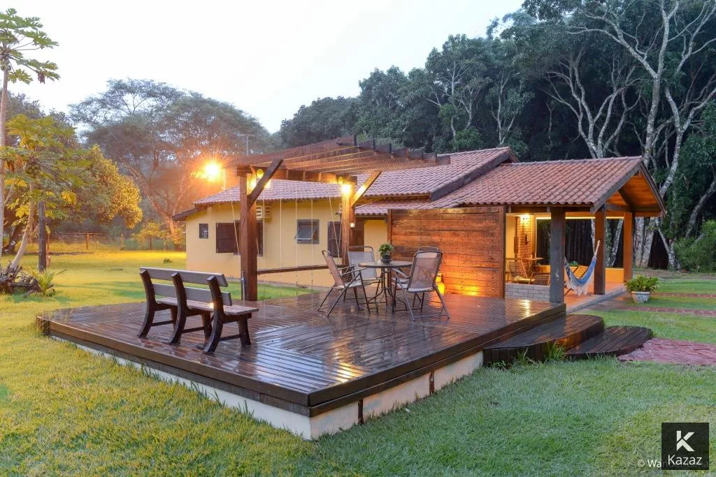 LINDA POUSADA EM CHAPADA DOS GUIMARÃES<br>A 5 MINUTOS DO CENTRO - SÃO 3,7 HECTARES,<br>PRÓXIMO AO MIRANTE CONTENDO: <br>02 chalés de padrão e acabamento rústico para uso da família, Deck Central, Estacionamento, Quadra de V