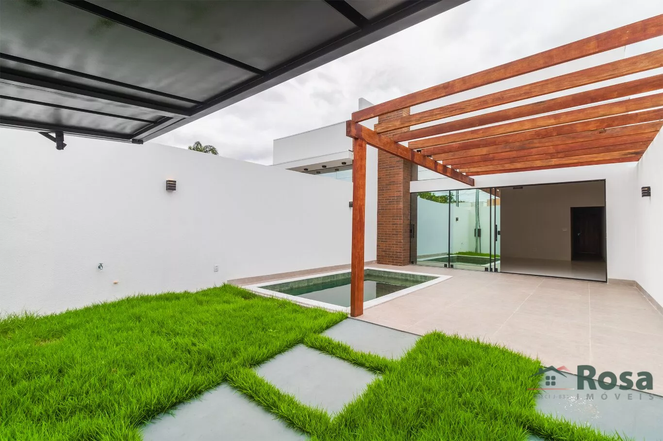 Casa Térrea com Piscina Recém-Construída à Venda no Bairro Jardim Universitário. O Imóvel Conta com 3 Quartos, Sendo 1 Suíte com Closet, 1 Banheiro Social, Lavanderia Coberta, Cozinha e Sala Integradas com Churrasqueira e Pé Direito Alto. A Bancada e a Pia em Mármore, e Uma Ampla Porta de Correr em Blindex Integra a Área Interna com a Piscina. Possui 2 Vagas de Garagem com Pergolado, em Terreno Murado de 180 m² e Área Construída Total de 113 m².<br><br> Destaques: Acabamento em porcelanato e materiais de alto padrão, teto rebaixado em gesso com iluminação em LED, gramado e um projeto diferenciado que proporciona abundante luz e ventilação natural.<br><br>