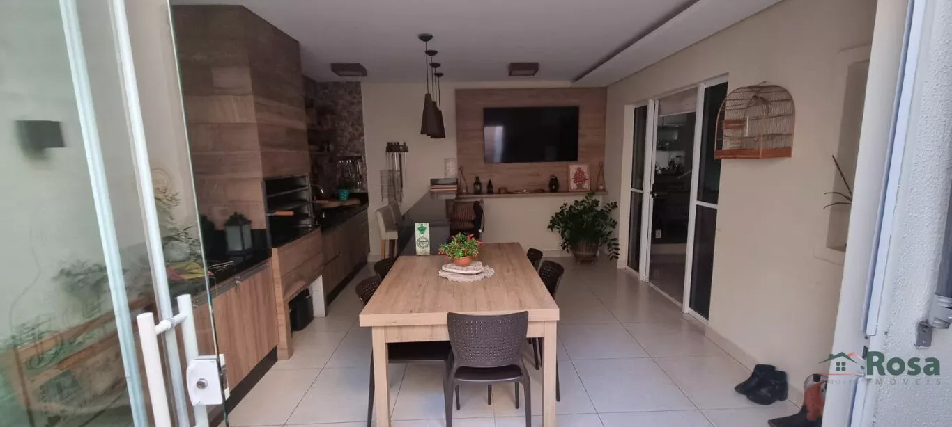 Sobrado contendo 3 suites sendo 1 Master com Closet. Sala de TV, Cozinha com cooktop, forno elétrico e coifa, sala de jantar integrada com espaço gourmet com churrasqueira e lavabo. Garagem pra 2 carros e área de serviço. Área comum com espaço