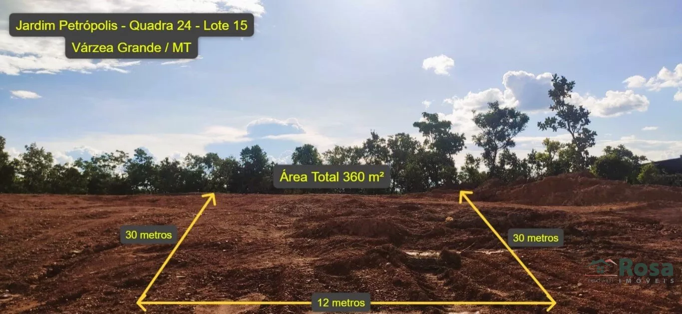 Terreno à Venda no Bairro Petrópolis, Várzea Grande! Descubra esta oportunidade única de adquirir terrenos residenciais em frente ao Florais da Mata, a 35 m² da Av. Chapéu do Sol, com toda a infraestrutura da encantadora região de Petrópolis, Várzea Grande. Este imóvel residencial 12x30 oferece uma área útil e total de 360,00 m². Não é na Avenida, é o 1.o depois da esquina. Não perca essa chance, entre em contato conosco para mais detalhes!<br><br> Aceita carro no negócio<br><br>