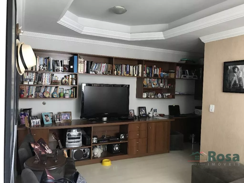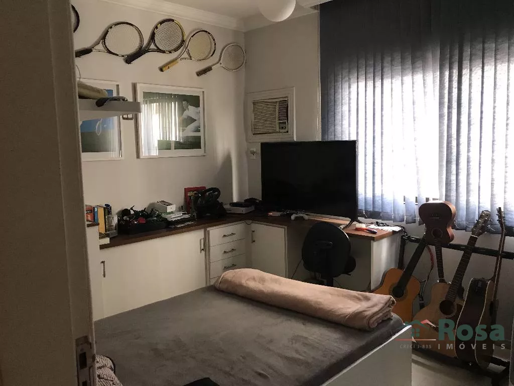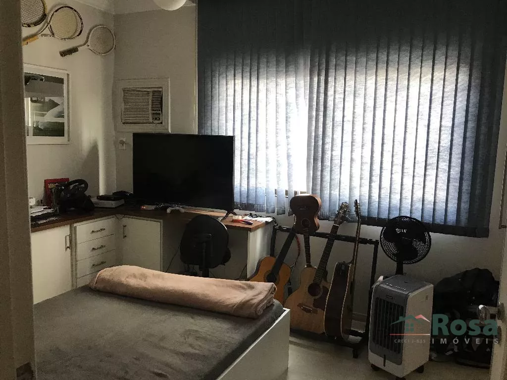 3 suítes, sala de jantar, sala de estar, sala de tv com armarios, cozinha ampla, area de serviço, ar condicionado em todos os ambientes, area de lazer completa com saúna. O apartamento ainda conta com depósito na garagem (quarto fechado) de 16m²