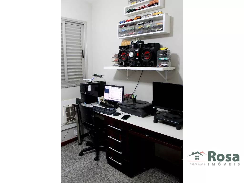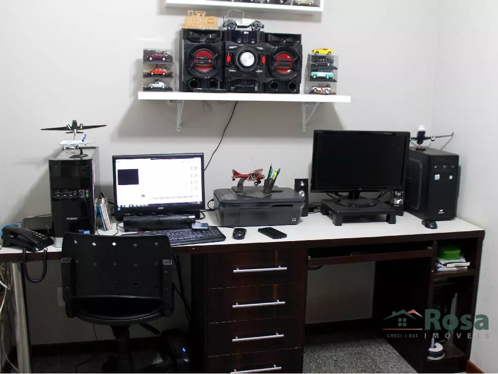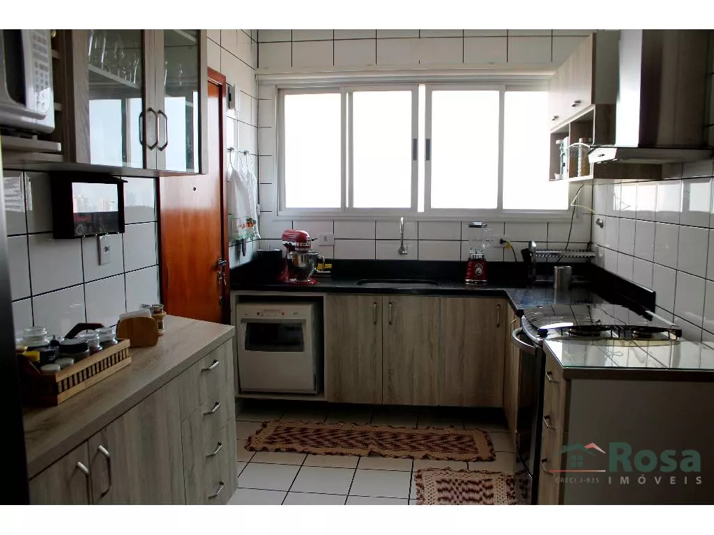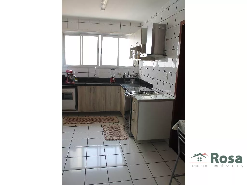 Imóvel com tres quartos, sendo um uma suite, 1 lavabo, 1 banheiro social, cozinha, banheiro de empregada, escritório completo, sacada com churrasqueira, depósito na garagem com estantes para acondicionar materiais diversos, área de lazer completa